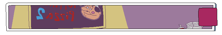 The room is a gritty, trash-filled, and dilapidated pizza place, seemingly called "Peppino's Pizza 2" based on the inverted window, which has a Peppino-like face making an Italian expression on it. The other thing to note is the giant wall mural of an amusing caricature of Peppino in a proper chef's suit holding a pizza and saying, "Nothing Compares!". As Peppino enters the boss fight, Fake Peppino turns around and makes a similar, but distorted "scared" scream.