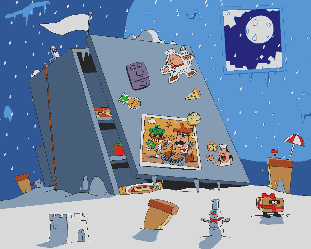 Fake Santa flies into the room, and from time to time, throws presents containing Snowmen at the player. He cannot be hurt directly, but the player can get rid of him by either leaving the room with him, throwing an enemy at him, or using a super taunt (required when the player obtains the pepper pizza).