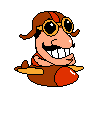Kentucky Bomber is a Kentucky Kenny wearing an aviator helmet, riding a small brown plane.