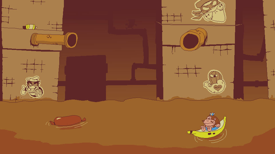 - His animations in-game suggest that he is grabbing onto one of Peppino's pockets in order to steal a coin from it.