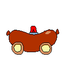 The Police Car is a big sausage on pizza-like wheels with a flasher on top.